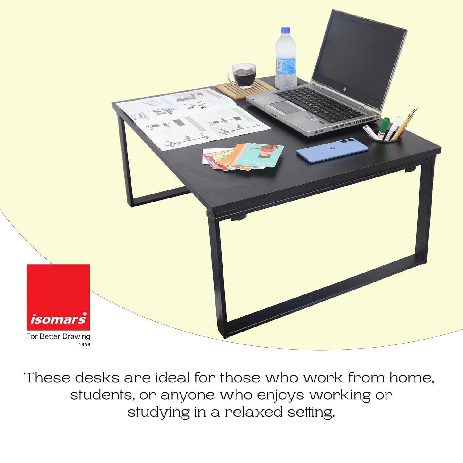 ISOMARS Extra Big Floor Desk Laptop Study Table for Work from Home, Online Classes, Card Games and Kid's Activities (Black - Extra Large)
